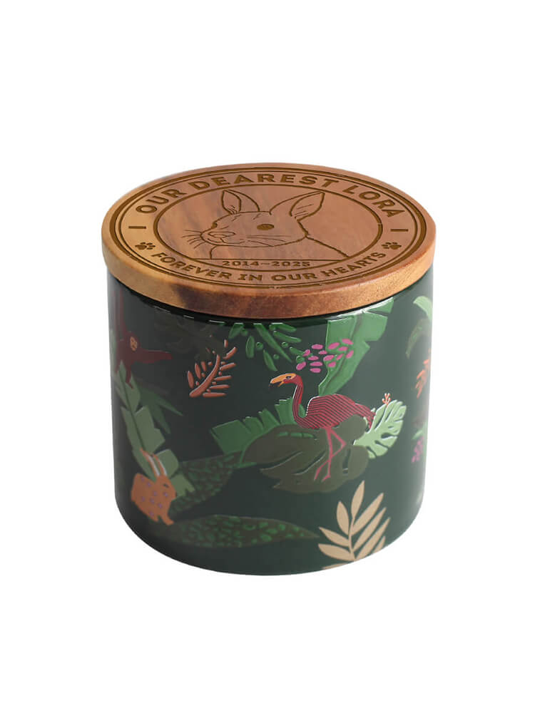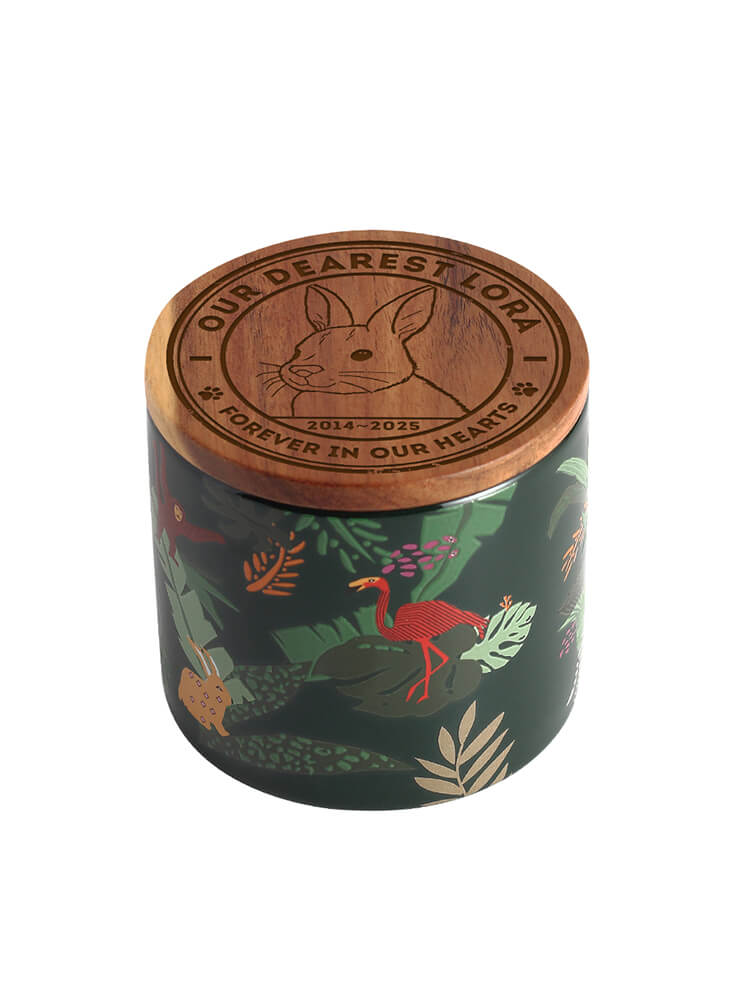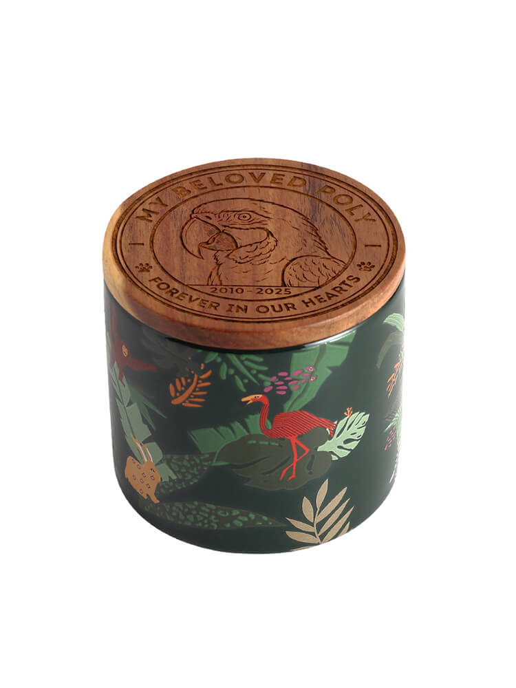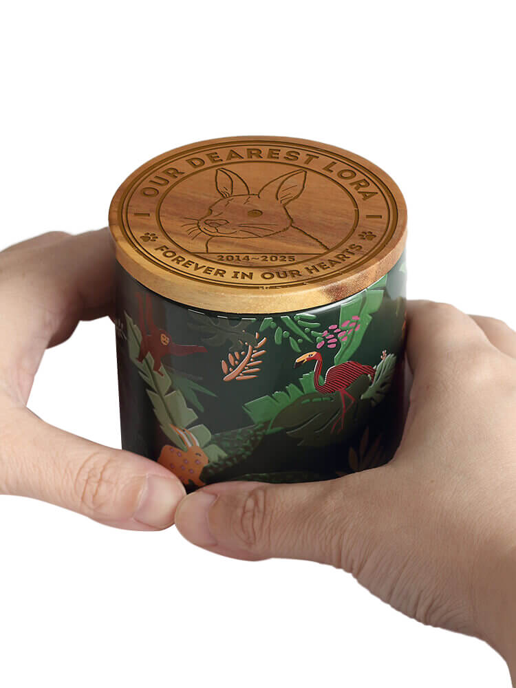 Airtight & Secure: The cylindrical ceramic body is topped with a natural wooden lid. A high-quality silicone seal ensures the ashes are kept safe, dry, and secure for eternity.