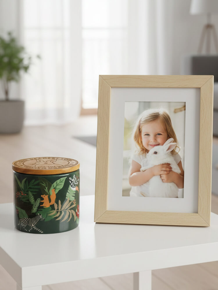 Our small pet urns feature two enchanting themes, designed to reflect the magical world where your pet now resides: The Enchanted Forest: A lush, peaceful sanctuary where your pet can roam freely among ancient trees and soft moss.